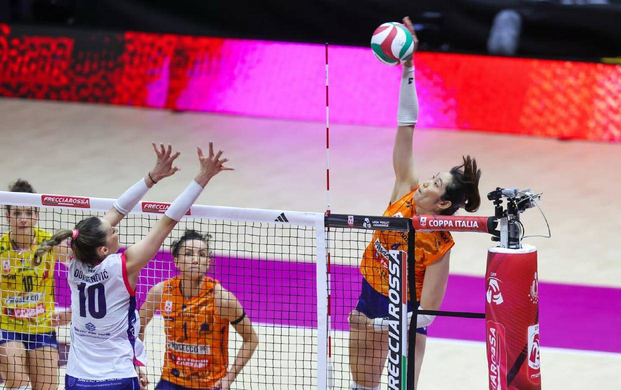 科内利亚诺的进攻体系,核心是哈克。瑞典接应常规赛的表现,是MVP级别的。半决赛对诺瓦拉,虽然有一场起伏,但整体输出依然是球队最稳定的得分点。朱婷和加比在两侧的牵制,让哈克在二号位有了更多的发挥空间。而在米兰那边,埃格努依然是那个“核武器”。超级杯那场,她轰下33分,53扣30中,成功率高达56%,但队友加起来只比她多拿1分。米兰的进攻,过于依赖埃格努的单点爆破。如果科内的拦网能把埃格努限制在20分左右,米兰的进攻就很难打开局面。